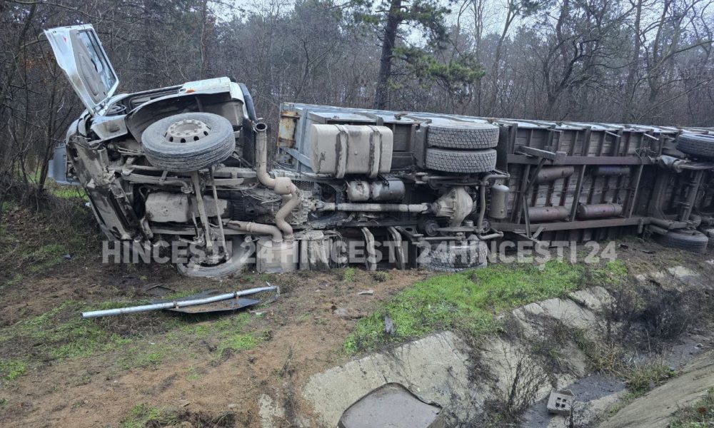 Accident grav în raionul Hîncești: un camion s-a răsturnat într-o curbă periculoasă, iar șoferul a ajuns la spital. Totul s-a întâmplat în zorii zilei de 10...