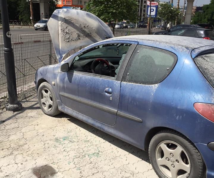 /FOTO/ Automobil în flăcări pe bulevardul Decebal. Mașina au stins-o, dar proprietarul e de negăsit.