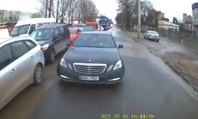 S-a crezut mai smecher decât toți, fiind la un pas de a produce un accident. Momentul a fost înregistrat de camera de bord a unui vehicul.
