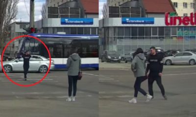 Gestul periculos al unui pieton: De dragul unei tinere, a trecut zebra la culoarea roșie a semaforului.