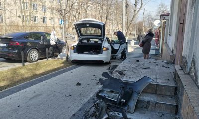 Accident violent în centrul capitalei. Un Mercedes s-a tamponat cu o Tesla.