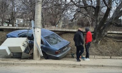 Un șofer de BMW a ajuns cu mașina într-un stâlp, în orășelul Durlești.