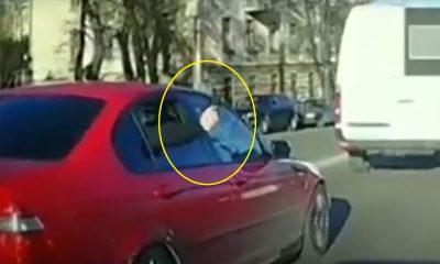 Un bărbat, aflându-se pe bancheta din spate a unui automobil, a fost surprins cu o armă scoasă pe geam, în plin trafic.