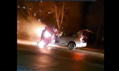 O mașină, model Volvo, a fost cuprinsă de flăcări în seara de 03 ianuarie, în jurul orei 18.00, pe o stradă din Capitală.