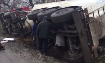 O autocisternă ajuns în șanț după ce șoferul a pierdut controlul volanului.
