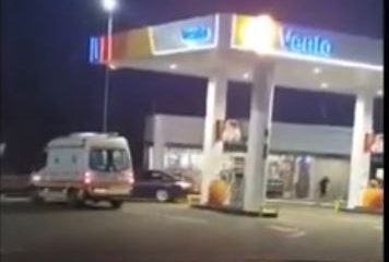 O ambulanță a fost surprinsă într-o benzinărie având sirena și girofarul conectate