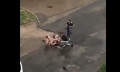 Un grup de tineri a fost filmat cum se bat într-o băltoacă în capitală.