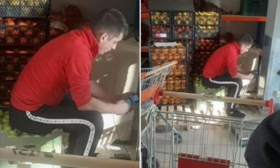 Un angajat al unui supermarket din Chișinău a fost fotografiat în timp ce stătea așezat pe o ladă cu mere și citea în telefonul personal.