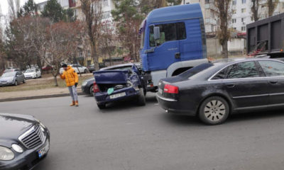 Un automobil a fost târât câțiva metri după ce a fost izbit de un TIR al Armatei Naționale.