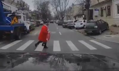 O mamă a fost surprinsă în timp ce punea viața propriului copil în pericol. Aceasta traversa strada la culoarea roșie a semaforului cu copilul de mână.