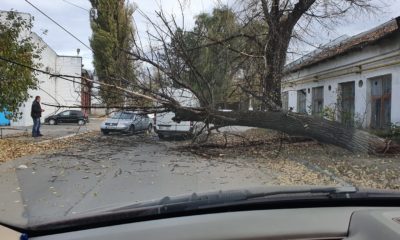 Un copac imens s-a prăbușit, pe o stradă din Chișinău. Martorii spun că totul s-a întâmplat chiar lângă garajele Asociației de Gospodărie Spații Verzi.