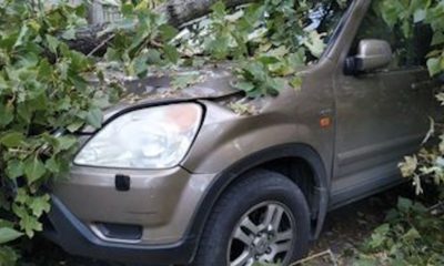 Огромное дерево рухнуло на автомобили, припаркованные во дворе жилого дома на улице Георге Асаки.