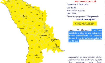 Meteorologii au emis în această după-amiază cod galben de vânt puternic pe întreg teritoriul țării.
