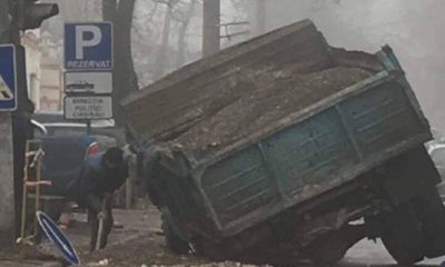 Ghinion pentru șoferul unui camion de mare tonaj. Camionul pe care-l conducea a rămas blocat astăzi pe o stradă din Capitală după ce una din roti...