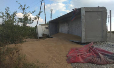 Ghinion pentru un agent economic din țară. Un camion plin cu grâu s-a răsturnat pe un drum din raionul Sângerei.
