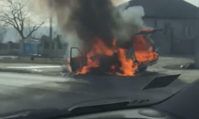 Mașină distrusă complet de flăcări, pe un drum din satul Peresecina al raionului Orhei.