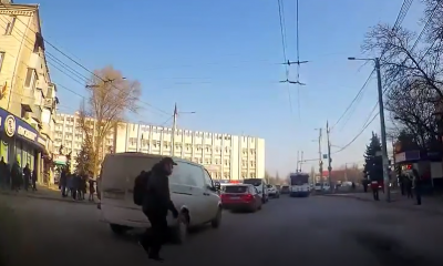 Graba și neglijența pot avea consecințe grave. Un bărbat a fost cât pe ce să fie lovit de un automobil.