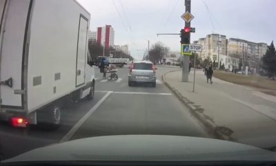 Un șofer grăbit a fost la un pas de a lua pe capotă un cărucior cu un bebeluș în el chiar pe trecerea de pietoni.