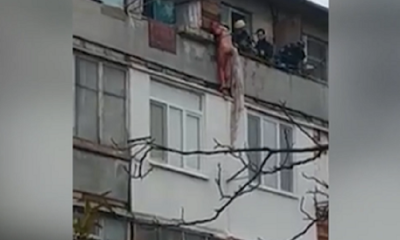 Un bărbat gol intenționa să sară de pe balconul etajului al cinci al unui bloc locativ din capitală.