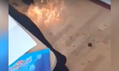 Câțiva elevi s-au filmat în timp ce dau foc la dezinfectant, chiar pe podeaua din clasă, după care încearcă să stingă flăcările cu picioarele.