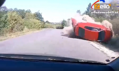 O mașină a derapat, s-a lovit de marginea unui canal de scurgere, a ricoșat, iar apoi sa inversat pe carosabil.
