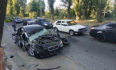Accident violent pe șoseaua Muncești din capitală. Un BMW s-a făcut zob după ce s-a ciocnit cu un excavator.