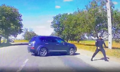 Un șofer a surprins momentul în care un automobil a fost cât pe ce să lovească un polițist.