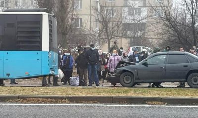 Clipe de panică pentru pasagerii unui autobuz de rută din capitală. Vehiculul în care se aflau a fost tamponat puternic de un automobil.