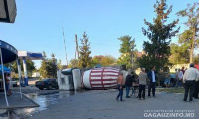Dimineață cu ghinion pentru mai mulți șoferi din sudul țării. O autobetonieră s-a răsturnat în apropierea unui magazin și le-a avariat mașinile care erau parcate acolo.