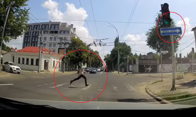 Și-a pus viața în pericol pentru a câștiga câteva secunde. Un pieton, filmat cum aleargă pe o zebră, în fața mașinilor, la culoarea roșie al semaforului.