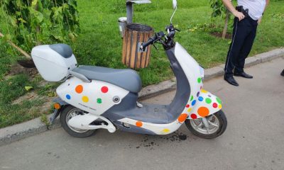 Accident pe loc drept în capitală. O tânără de 18 ani a ajuns la spital după ce s-a tamponat cu motoreta într-un coș de gunoi.
