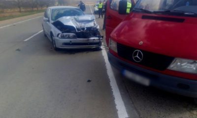 Coliziune violentă, la Strășeni. Un automobil a intrat în plin într-un microbuz.
