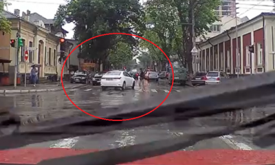 Ploaia abundentă, graba și neatenția au fost cât pe ce să devină cauzele unui accident pe o stradă din capitală.