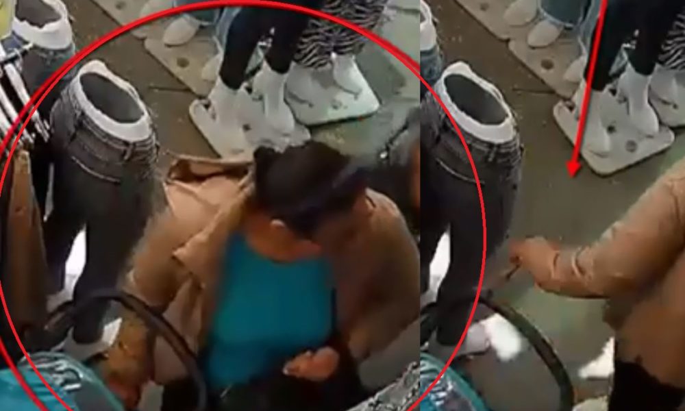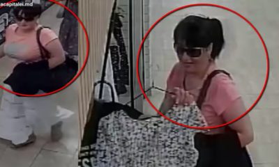 Femeia care apare în imaginile video este căutată de poliție, fiind suspectată că a sustras o geantă uitată într-un butic dintr-un centru comercial din capitală.