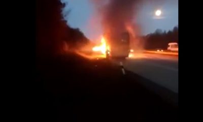 Momente dramatice surprinse pe o autostradă din Germania. Un microbuz, înmatriculat în Republica Moldova, dar care revenea din Marea Britanie a ars ca o torță.