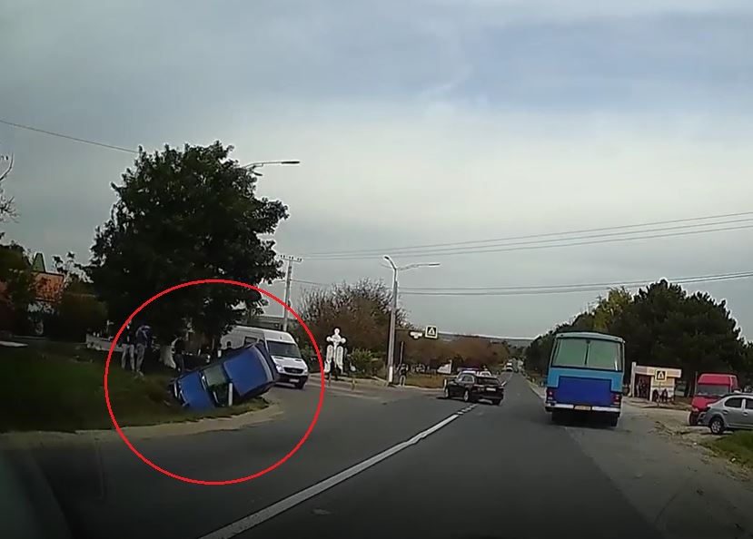 Au scăpat nevătămați ca prin minune. Un automobil a ajuns într-un șanț de la marginea drumului după ce s-a tamponat cu un alt vehicul.