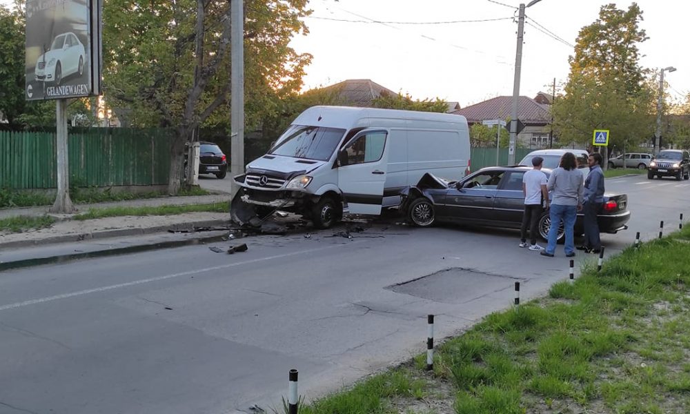 S-au tamponat chiar sub nasul polițiștilor. Un automobil s-a tamponat violent cu un microbuz marfar, chiar lângă inspectoratul Național de Securitate Publică.