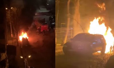 Fum, foc și panică în curtea unui bloc de locuit din capitală. O mașină a luat foc, iar flăcările s-au răspândit și la un alt automobil.