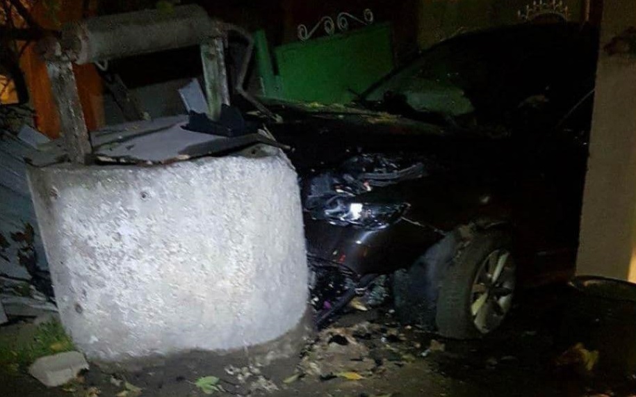 Un automobilist a rămas viu și nevătămat după ce a doborât cu mașina un gard, iar apoi s-a tamponat într-o fântână.