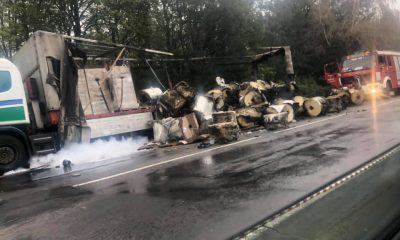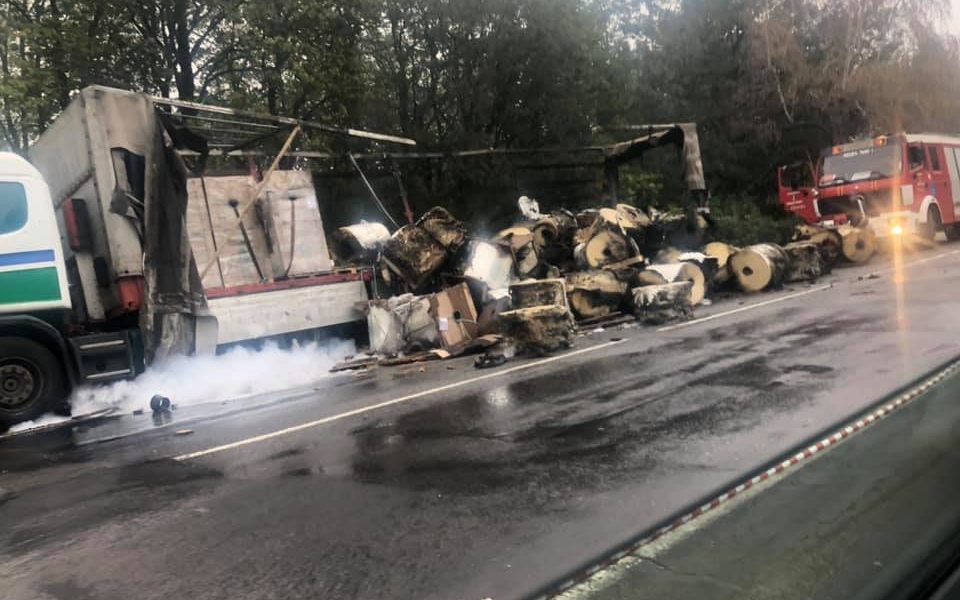 Ghinion pe capul unui șofer de camion de la noi. 10 tone de peliculă pe care acesta le transporta au luat foc.