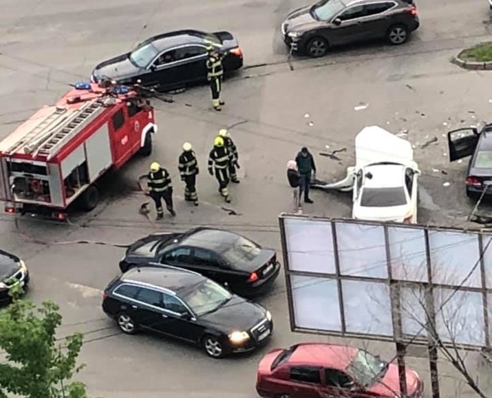 Accident cumplit într-o intersecție din Chișinău. Un șofer a ajuns la spital după ce mașina pe care o conducea s-a tamponat cu un alt automobil.