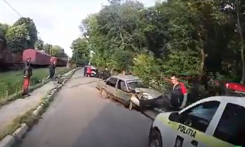 Ca prin urechea acului. Un șofer a scăpat fără nicio zgârietură după ce a doborât cu mașina un stâlp.