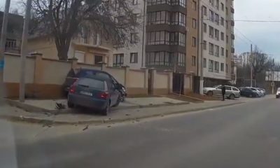 Graba și lipsa de atenție au cauzat un nou accident pe un drum din orășelul Durlești. Două autoturisme s-au ciocnit violent și au ajuns pe trotuar.