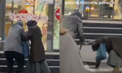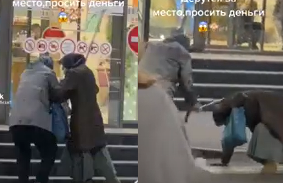 De râs și de plâns. Două femeie, cel mai probabil cerșetoare, au fost filmate cum se bat pentru locul din fața unui supermarket.