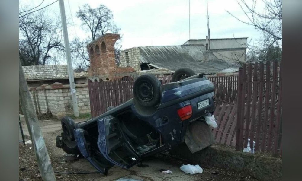Accident violent, la Bender. Un șofer s-a răsturnat cu mașina sa pe marginea drumului.