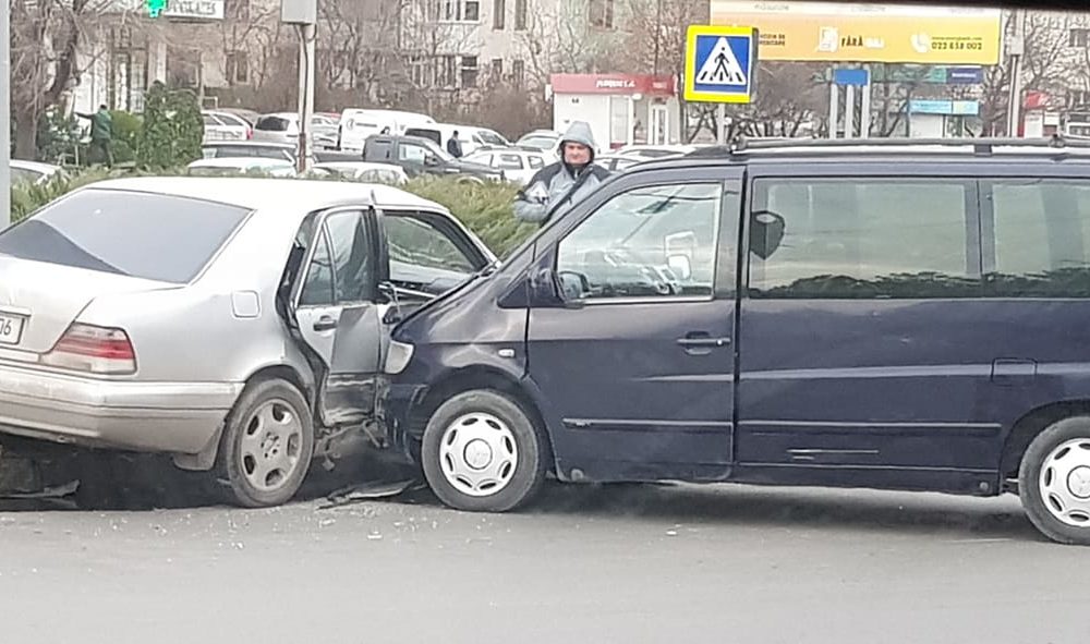 Grav accident pe strada Calea Orheiului din Capitală. Un microbuz și o mașină s-au tamponat violent.