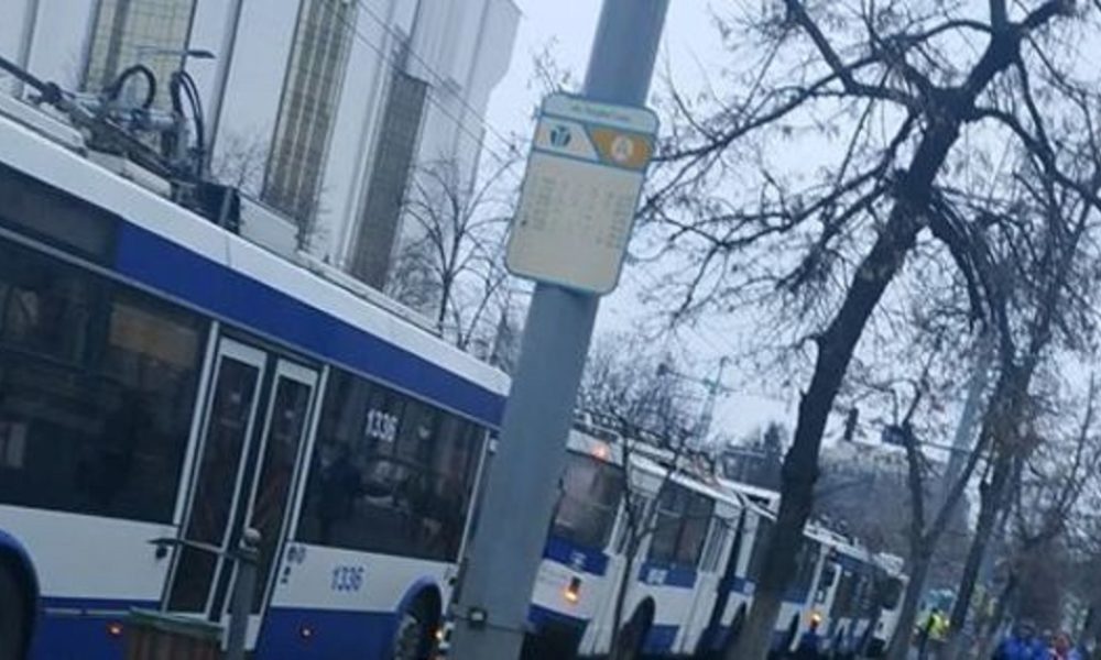 Mai multe troleibuze au rămas blocate în centrul Chișinăului după ce un fir s-ar fi rupt.