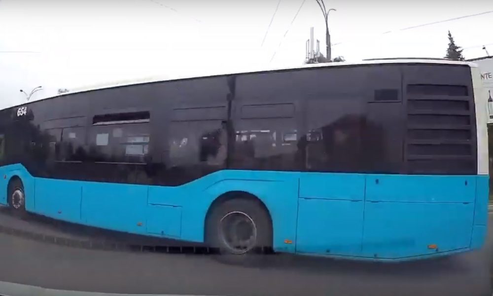 Un șofer de troleibuz a fost surprins cum se uită în telefon, în loc să fie atent la drum, și asta pe tot traseul.