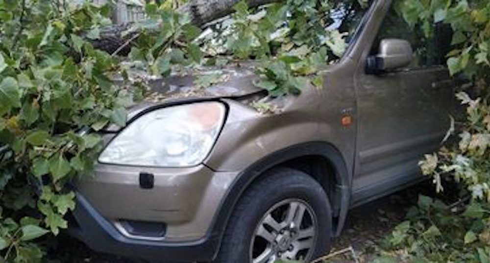 Un copac uriaș s-a prăbușit peste două mașini, la Telecentru. Proprietarii au chemat poliția.