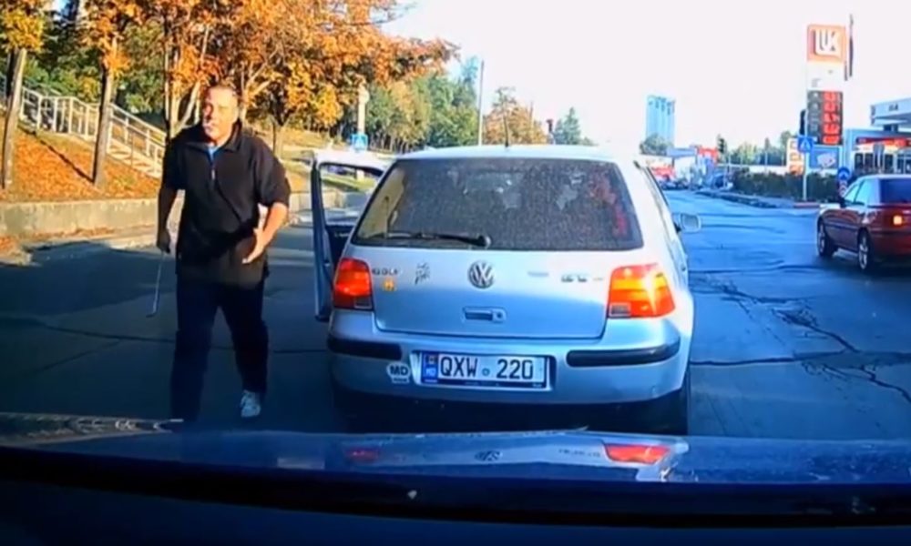 Imagini rupte din filme, pe o stradă din Chișinău. Un șofer, supărat că un alt conducător auto nu l-a lăsat săși schimbe banda, a ieșit din...